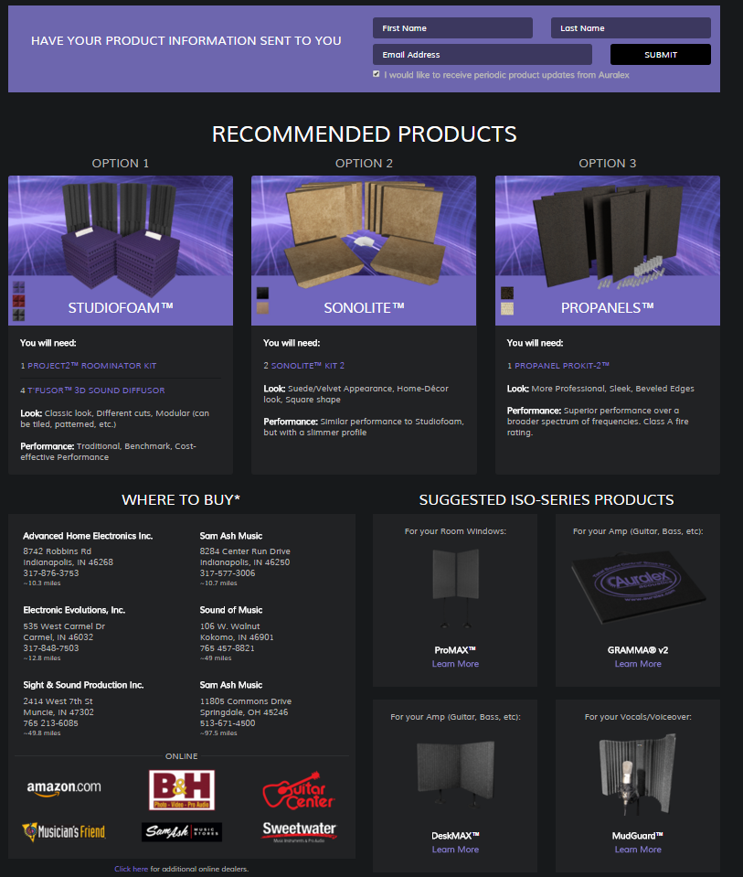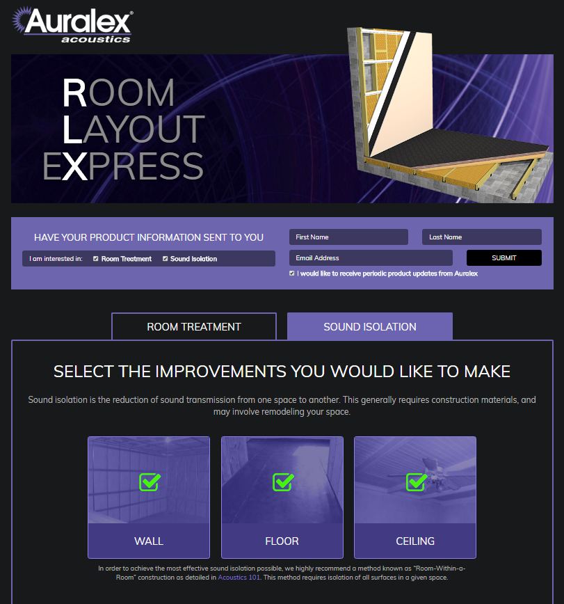 The Auralex Acoustics Room Layout eXpress (RLX) is an acoustical treatment calculator that determines the proper amount of acoustic treatment based on the overall size and purpose of a room. The original web-based version, found at rlx.auralex.com, is designed to deliver results for rooms up to approximately 700 cubic feet. The scaled-up mobile app version is able to configure rooms up to approximately 7,000 cubic feet. I advised and managed outside developers to help build, test, update, and transfer the information and functionality of this app. It made its debut at NAMM 2019 and has since been featured in several major media and social media campaigns. I was also responsible for monitoring the app and reporting the analytics post-launch. The app had over 2,000 active installs at it’s peak and 10,000+ over it’s lifetime.